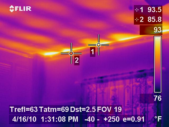![]() Home Energy Audit | In this second thermogram you can again clearly see missing insulation in the attic space above a living room.